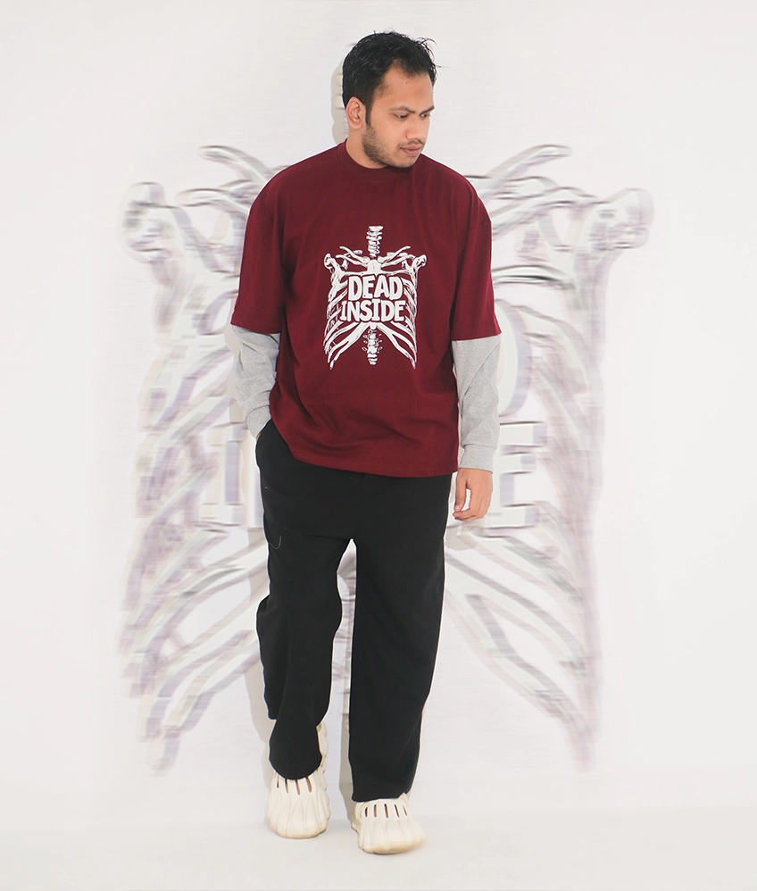 Dead Inside T-Shirt blends comfort and attitude, giving you a stylish oversized fit with modern drop shoulders and double-sleeve detailing. Whether you’re dressing up for a night out or staying casual, this tee keeps you effortlessly cool and confident.